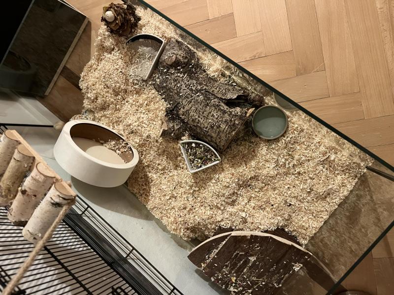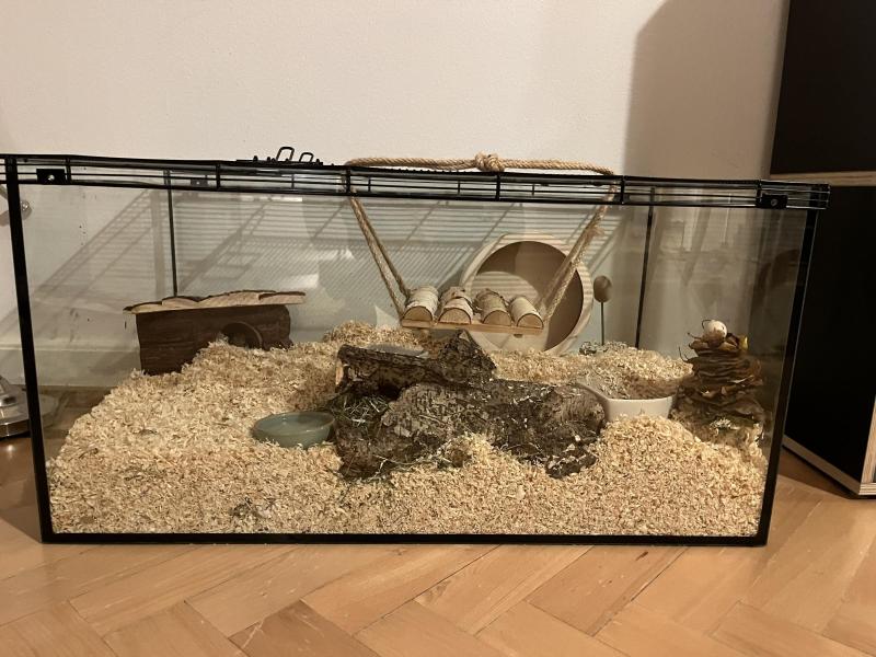 Junges Goldhamster-Weibchen mit Käfig und vielem Zubehör abzugeben.