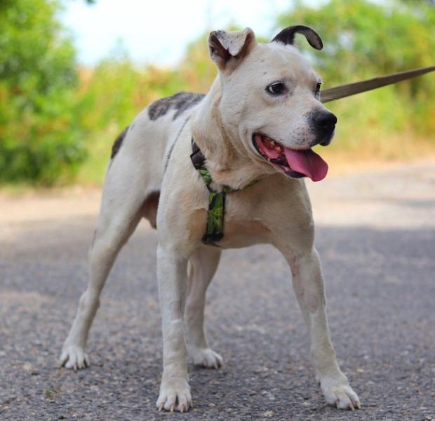 Im Sommer 2024 entdeckte ein Bekannter der Tierheimleiterin Kata in Ugyer den geschätzt im Mai 2016 geborenen Adam an der Kette ohne jeglichen Schutz vor der Witterung und auch ohne Wasser trotz der Hitze. Ugyer ist ein ärmlicher und heruntergekommener Gemeindeteil von Cegléd, in dem es immer wieder größere Kontroll- und Beschlagnahmungsaktion durch das Veterinäramt gibt, da hier besonders viele Tiere unter gravierenden Bedingungen leben wie eben auch der arme Adam. Kata informierte die zuständigen Ordnungshüter und diese beschlagnahmten den Rüden und brachten ihn ins Tierheim.