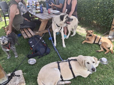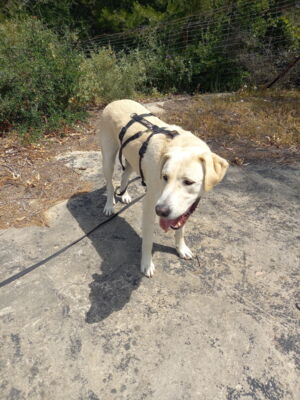 Albis zeigt sich im Camp als selbstsicherer und charakterstarker Hund. Ausserhalb des Camps hingegen ist er teilweise noch unsicher und reagiert ängstlich – insbesondere bei Begegnungen mit Fahrrädern. Im Auto fährt er bereits recht entspannt mit, und auch das Laufen an der Leine klappt schon einigermassen gut. Was er jedoch noch gar nicht kennt, ist das Treppensteigen.