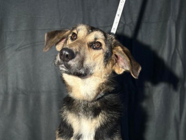 Sie ist eine liebe, neugierige und verspielte junge Hündin. Sie lebt zusammen mit mehreren Hunden in einem Zwinger und kann gut an der Leine geführt werden."