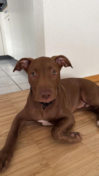 Alkis (11.05.2025) ist ein junger, wunderschöner American-Staffordshire-Terrier-Rüde mit viel Energie, Intelligenz und Arbeitswillen. Ursprünglich stammt er aus Griechenland und lebt aktuell in der Schweiz. Leider muss für ihn ein neues Zuhause gesucht werden, da seine jetzigen Halter mit den Anforderungen eines pubertierenden Junghundes überfordert sind.