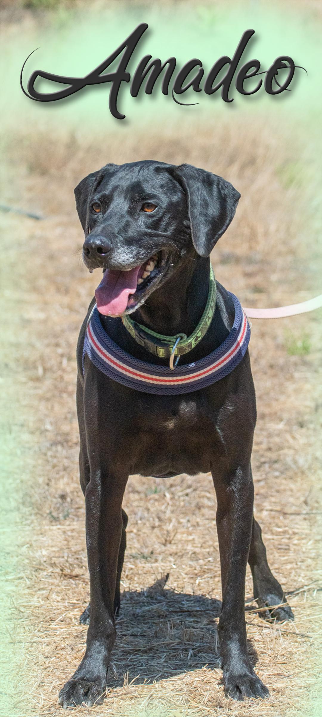 Hallo, das ist Amadeo, ein Bracke-Labrador Mix, geboren 2019, mit einer Schulterhöhe von 55 cm. Amadeo kam aus ganz schlechten Verhältnissen, aus einem Haushalt mit häuslicher Gewalt. Er hat sich inzwischen gut erholt und lebt in einem privaten Tierheim in Portugal und braucht jetzt dringend ein neues Zuhause.