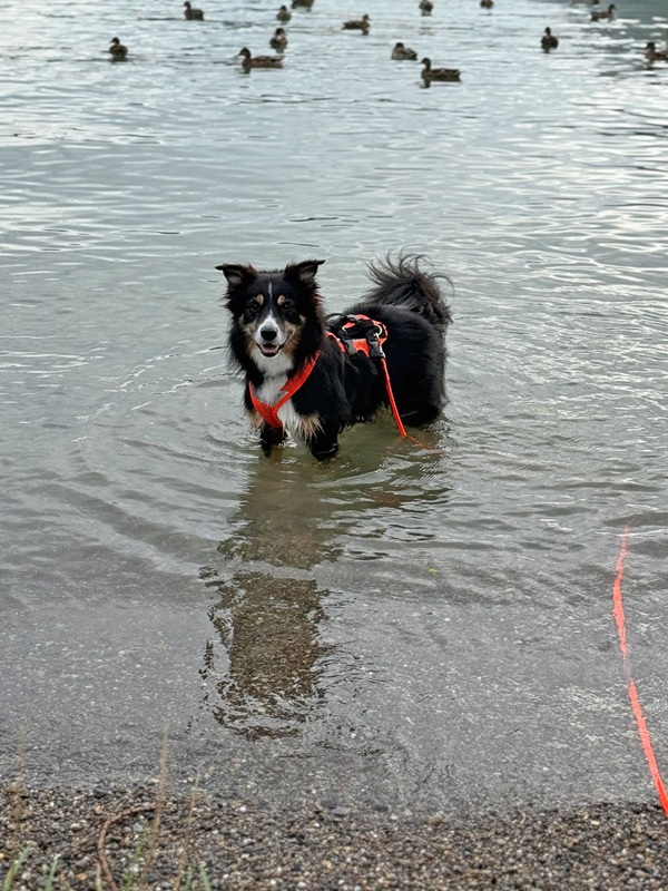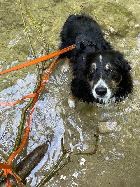 Bangee (26.6.18) ist ein äusserst liebenswerter, aktiver und zutraulicher Hundebub. Er ist bei allem mit Freude dabei, besonders liebt er es zu schwimmen. Er ist an Katzen, Pferde und Kinder gewohnt und war früher regelmässig beim Ausreiten mit dem Pferd dabei.