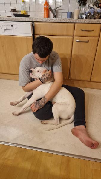 Trotz seines sanften Wesens ist Belkan ein Molosser-/Pitbull-Mischling mit Dogo-Argentino-Anteil, weshalb wir uns Menschen wünschen, die rasseerfahren sind und ihm Sicherheit sowie klare Führung geben können.