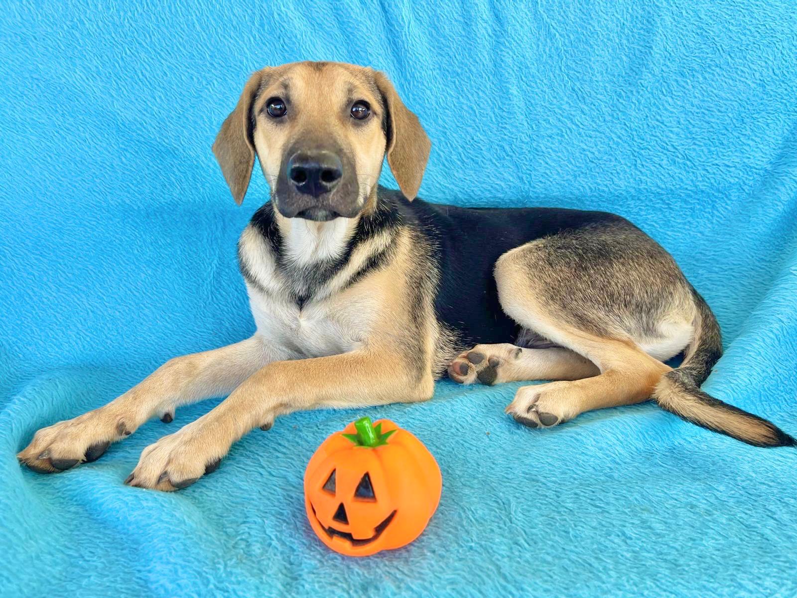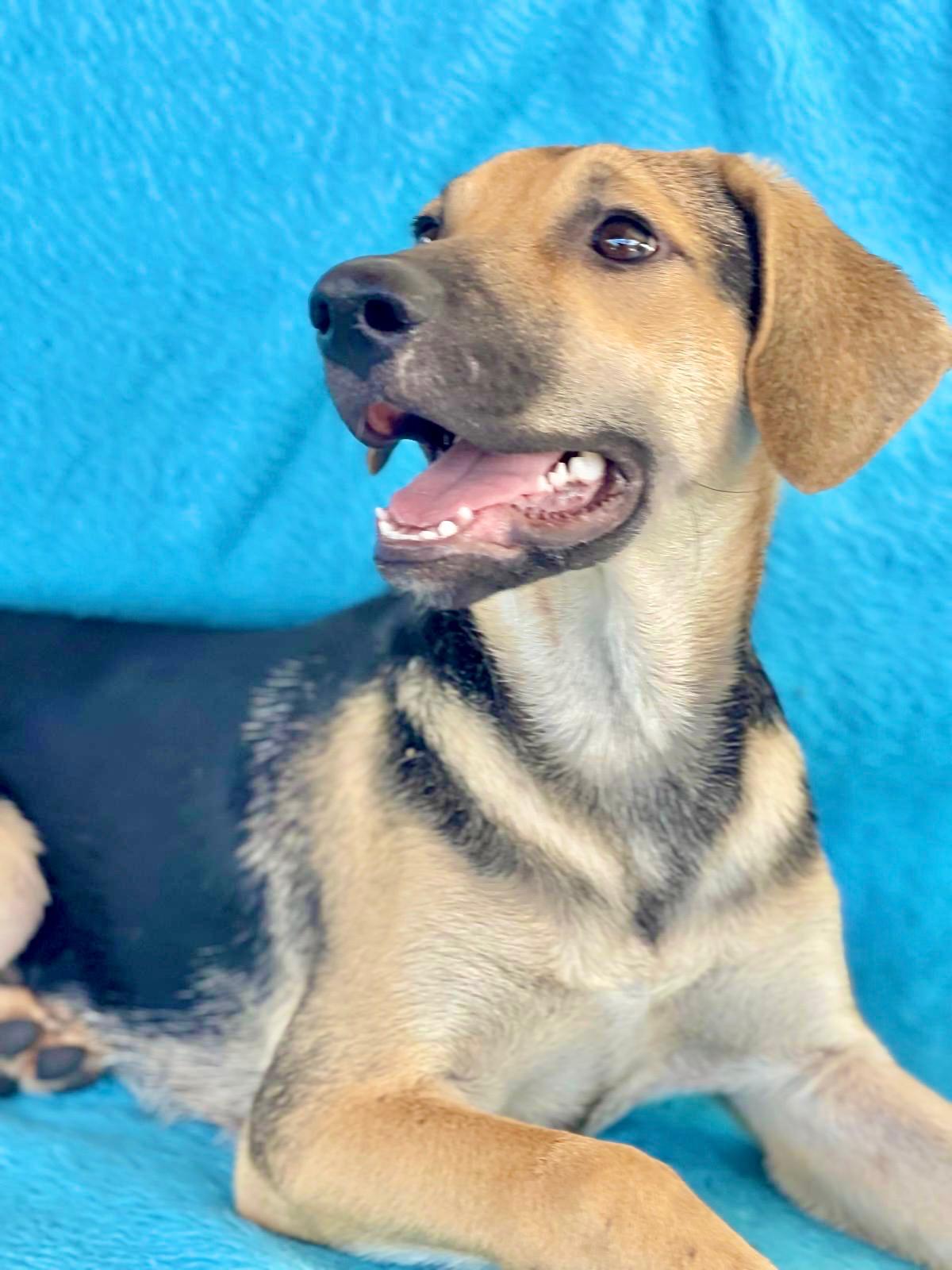 Der fünf Monate alte Welpe ist voller Lebensfreude und liebt es zu spielen, sehnt sich aber auch nach Kuschelzeit mit seinen Menschen. Er ist von Natur aus anhänglich und liebt es, in der Nähe seiner Menschen zu schlafen. Er ist sehr freundlich zu neuen Menschen und spielt gerne mit seiner Schwester und den anderen geretteten Hunden und Katzen. Dieser kleine Champion ist bereit, für seine für-immer-Familie.