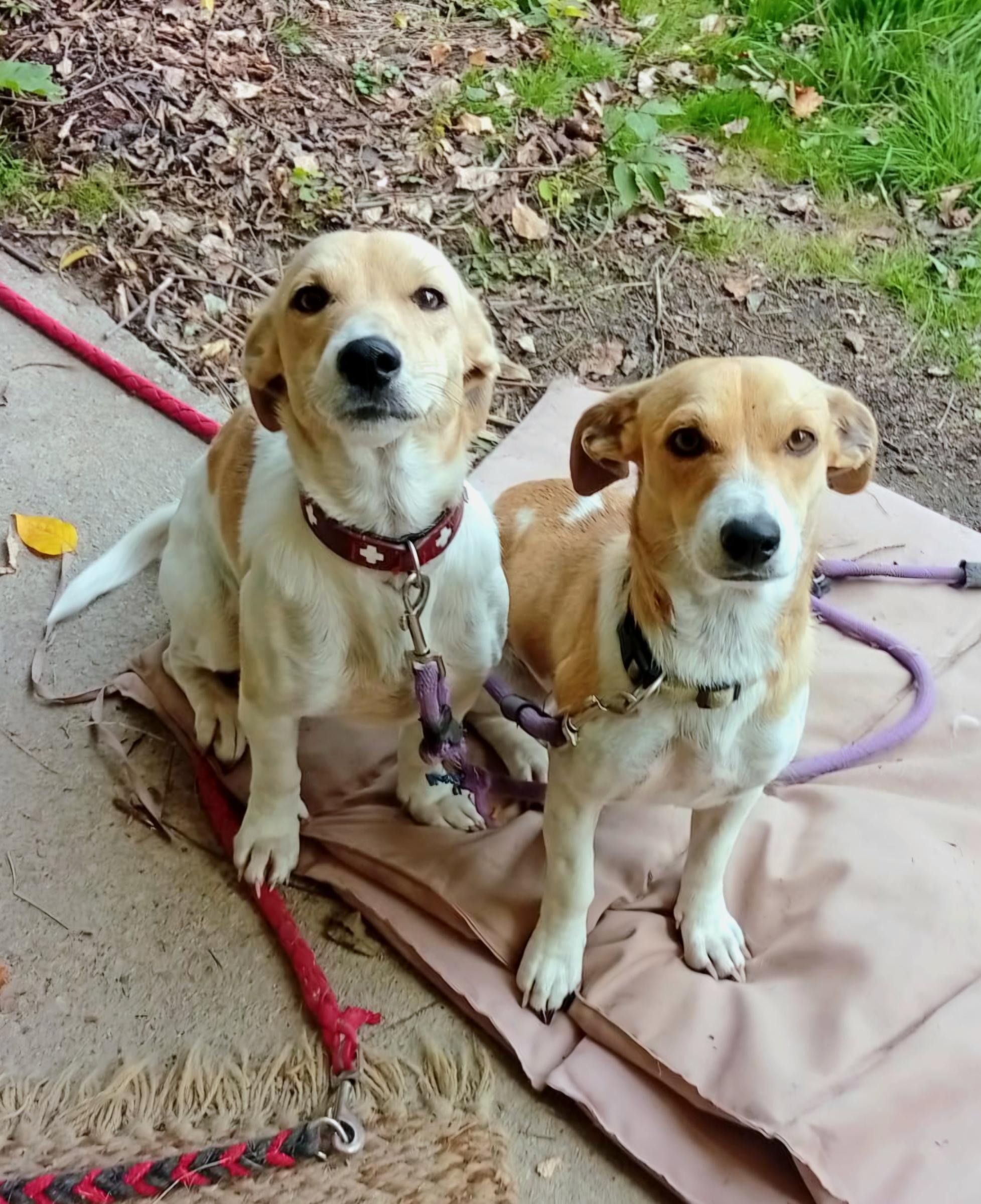 Die beiden sind altersgemäss fröhlich und verspielt, haben nichts Schlechtes erlebt, sind schon etwas erzogen. Sie brauchen genug Auslauf und sind dann zuhause aber friedlich.