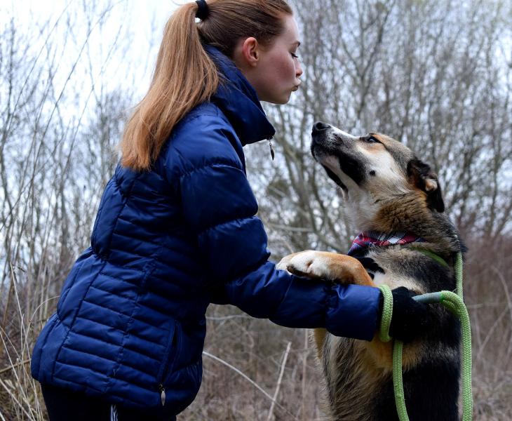 - bei kleinen Hunden auf engem Raum kann er etwas dominant sein