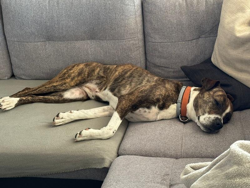 Eleni (01.05.21) ist unsere bezaubernde Pitbull-Mischlingshündin, die mit ihrer stürmischen Art und ihrem unwiderstehlichen Charme jeden Tag zu einem Abenteuer macht. Wenn du auf der Suche nach einer neuen besten Freundin bist, die dich mit ihrer Neugier und Lebensfreude ansteckt, dann hast du sie gefunden.