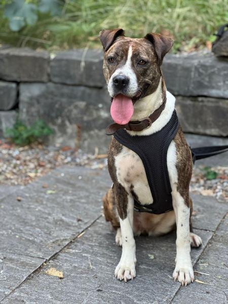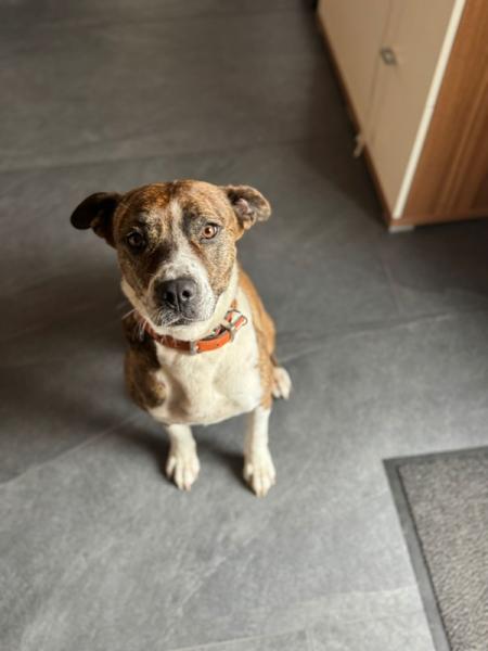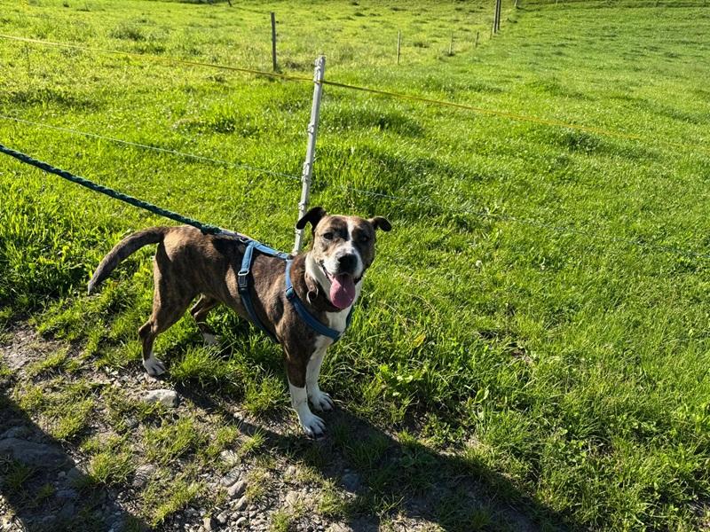 Eleni (01.05.21) ist unsere bezaubernde Pitbull-Mischlingshündin, die mit ihrer stürmischen Art und ihrem unwiderstehlichen Charme jeden Tag zu einem Abenteuer macht. Wenn du auf der Suche nach einer neuen besten Freundin bist, die dich mit ihrer Neugier und Lebensfreude ansteckt, dann hast du sie gefunden.