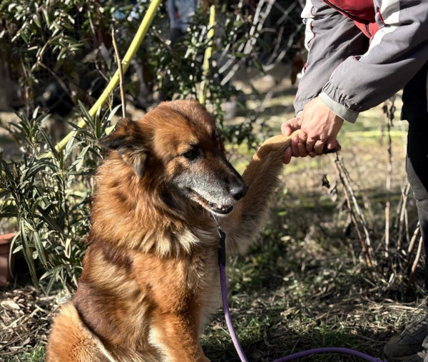 Gerad ist ein lieber und netter Hundesenior, welcher anfangs etwas zurückhaltend ist, nun aber immer mehr Zutrauen fasst und versucht, sich an seine neue Lebenssituation zu gewöhnen. Da Gerad vermutlich nur als Hofhund/Kettenhund gelebt hat, hat er dadurch nicht viel kennenlernen dürfen. Seine neuen Menschen sollten daher bereit sein, ihn geduldig und einfühlsam an die alltäglichen Dinge des Lebens heranzuführen, wobei er eigentlich neugierig auf das Leben da draussen ist. Bei den älteren Herrschaften ist es meistens so, dass die Ansprüche an die körperlichen Aktivitäten nicht mehr so hoch sind, aber die liebevollen Zuwendungen dafür umso mehr genossen werden, auch wenn Gerad noch lange nicht zum alten Eisen gehört und noch munter unterwegs ist. Alt, männlich, grösser, drei Punkte, welche es nicht ganz einfach machen, für Gerad schnell ein liebevolles Zuhause zu finden. Da sind Menschen gefragt, welche ein ganz grosses Herz für ältere Hunde haben und sehen, was für ein Jackpot Gerad ist, denn mit folgenden Adjektiven kann er wirklich punkten: freundlich, hübsch, liebenswert, bescheiden, optimistisch, dankbar, treu und das Herz am richtigen Fleck. Mit seinen Artgenossen versteht sich Gerad gut und wird aktuell (18.2.2026) in ein gemischtes Rudel integriert.