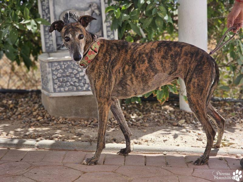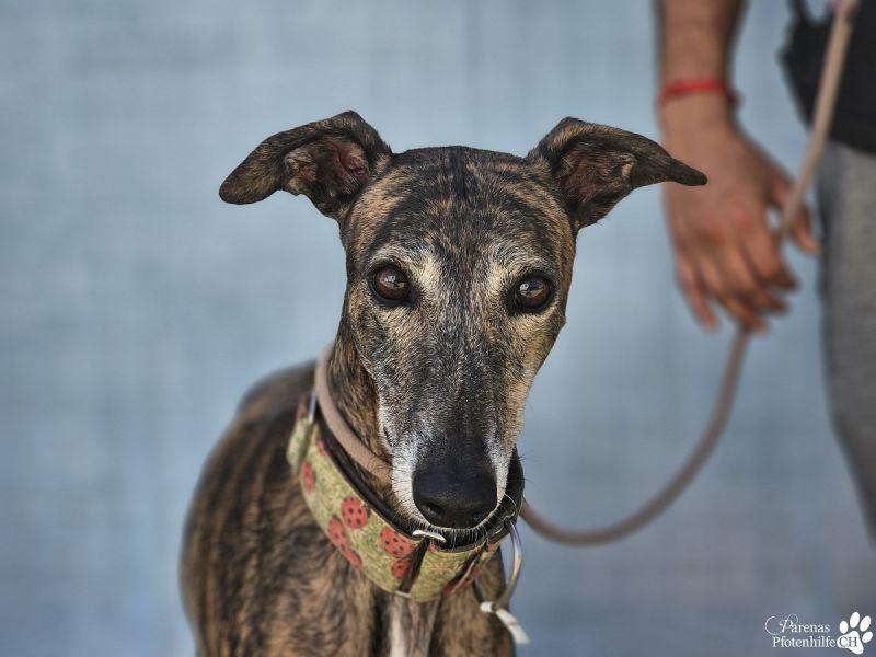 Giona ist eine elegante Galga mit viel Lebenserfahrung. Die ruhige, anschmiegsame und offene Lady gehört aber keinesfalls zum alten Eisen, sondern hat sich ein verspieltes, fröhliches Wesen bewahrt. Neugierig geht sie durchs Leben und wird entsprechend auch ihrer neuen Familie begegnen. Dort dürfen ruhig schon andere Hunde und/oder Katzen leben - Giona wird sich überall fabelhaft einfügen.