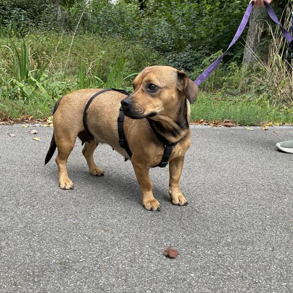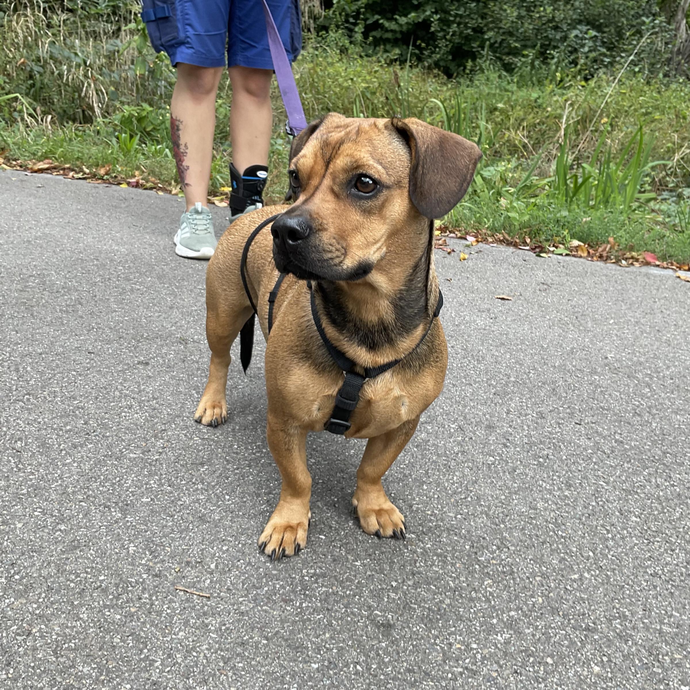 Gitti, die Dackelmix Hündin, ist am 21.4.2021 in Ungarn geboren, sie bringt bei 32cm 11.3kg auf die Waage.