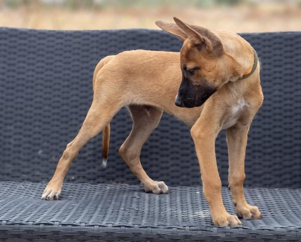 Bei unserem Hundekind handelt es sich um einen Mix zwischen Podenco und Malinois. Das bedeutet: Hier zieht kein Couchpotato ein, sondern ein intelligenter, aktiver und sehr lernwilliger Hund, der geistig als auch körperlich ausgelastet werden möchte.