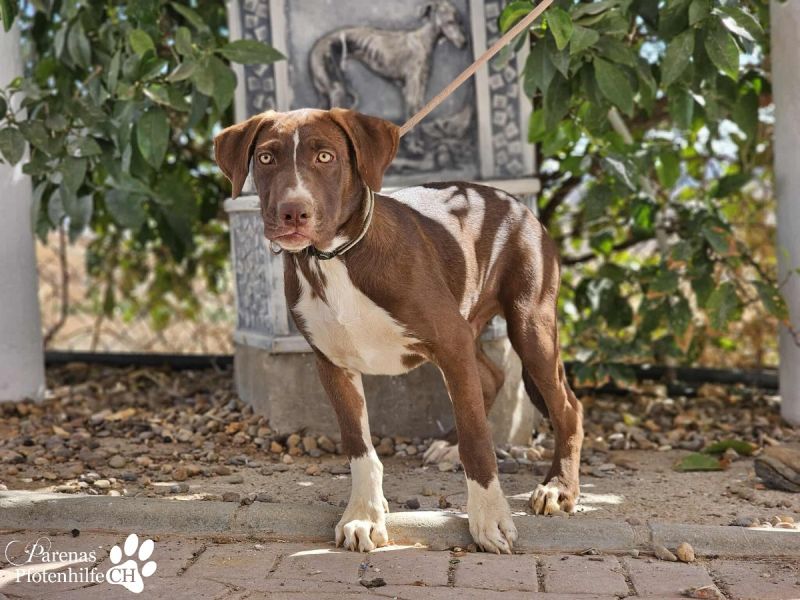 Heron ist ein wunderschöner, fröhlicher Mischlingsrüde, den seine angeborene Zahnfehlstellung im Alltag nicht beeinträchtigt. So konnte er seit seiner Ankunft im Refugio schon an Gewicht zunehmen. Neugierig auf die Welt erkundet der intelligente junge Mann sein Umfeld. Dabei marschiert er jedoch nicht als Einzelkämpfer voran, sondern ist sowohl gegenüber anderen Hunden sehr sozial als auch äußerst menschenbezogen. Das alles zeigt uns: Heron ist bereit, der Liebling seiner neuen Familie zu werden.