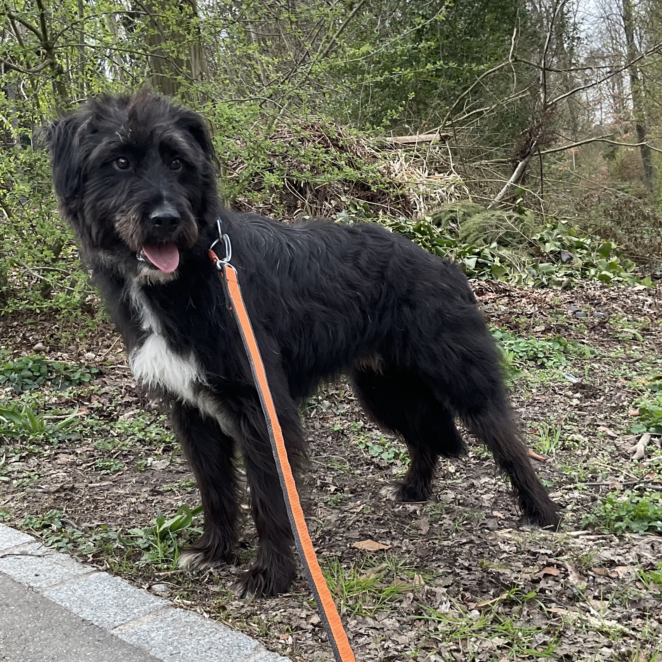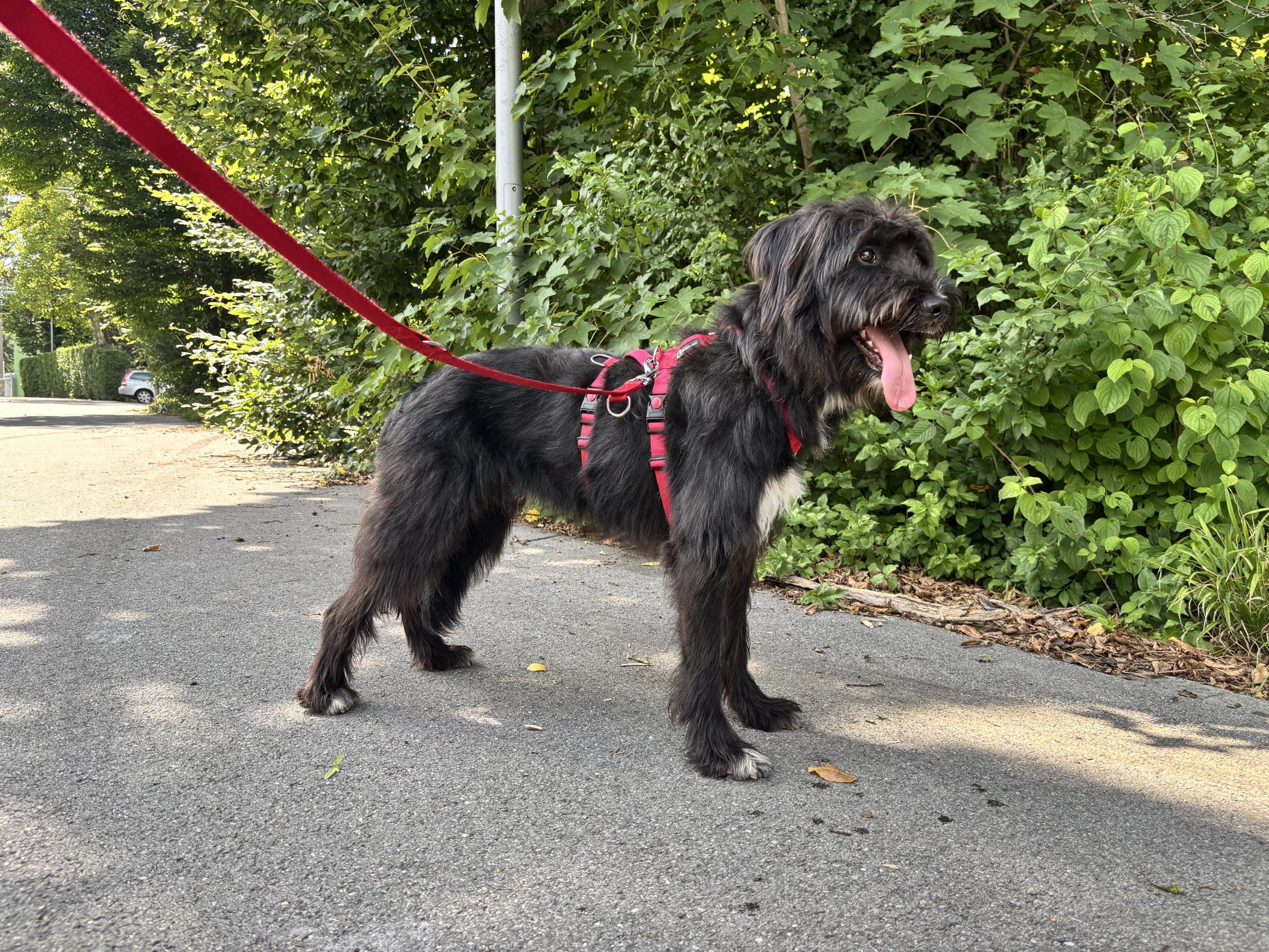 Jim, der wuschelige Mischlingsrüde, ist am 1.8.2022 in Ungarn geboren, er bringt bei 57 cm 23.7kg auf die Waage.