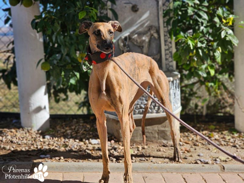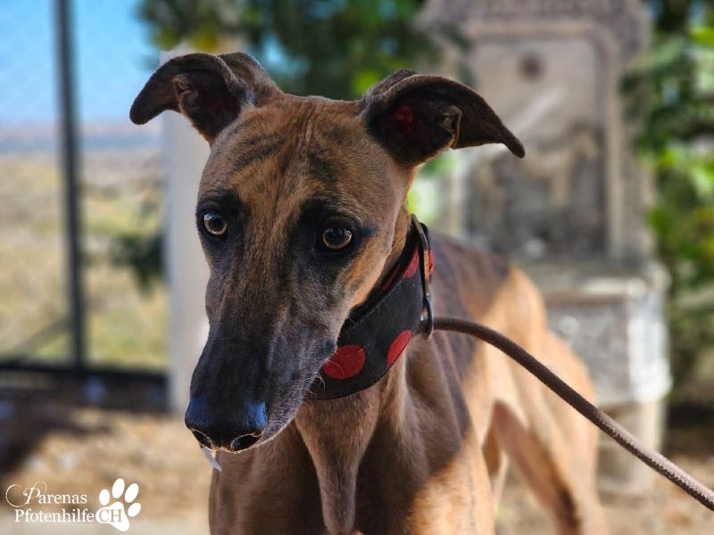 Kiki ist eine sanfte, schüchterne Schönheit, deren Herz neugierig und vorsichtig zugleich schlägt. Diese innere Zerrissenheit merkt man ihr an: Der Wunsch nach Nähe ist groß, die Vorsicht manchmal noch größer. Sie kommt angelaufen, springt begeistert hoch – dann hält sie kurz inne und überlegt, ob sie uns wirklich trauen darf. Sobald sie merkt, dass man es gut mit ihr meint, kommt sie wieder fröhlich auf uns zu und genießt Streicheleinheiten. Kiki fühlt sich in ihrer Hundegruppe wohl, ist fröhlich und verspielt. Mit jedem Tag wird sie ein bisschen mutiger und wartet darauf, endlich im eigenen Zuhause anzukommen.