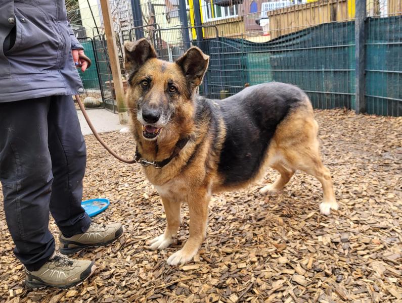 Draußen bemerkt man, dass sie noch nicht zum alten Eisen gehört, sie freut sich über jeden Spaziergang und läuft anständig an der Leine. Alltagssituationen sind ihr bekannt, sie ist interessiert und neugierig, aber immer auf ihren Menschen fokussiert. Sie kommt zuverlässig auf Zuruf, wir denken, dass man sie bald auch ohne Leine laufen lassen kann. Sie liebt Spaziergänge und die tun ihr auch gut und sie hätte sicherlich auch Freude an kleinen Apportier- oder Suchspielen.