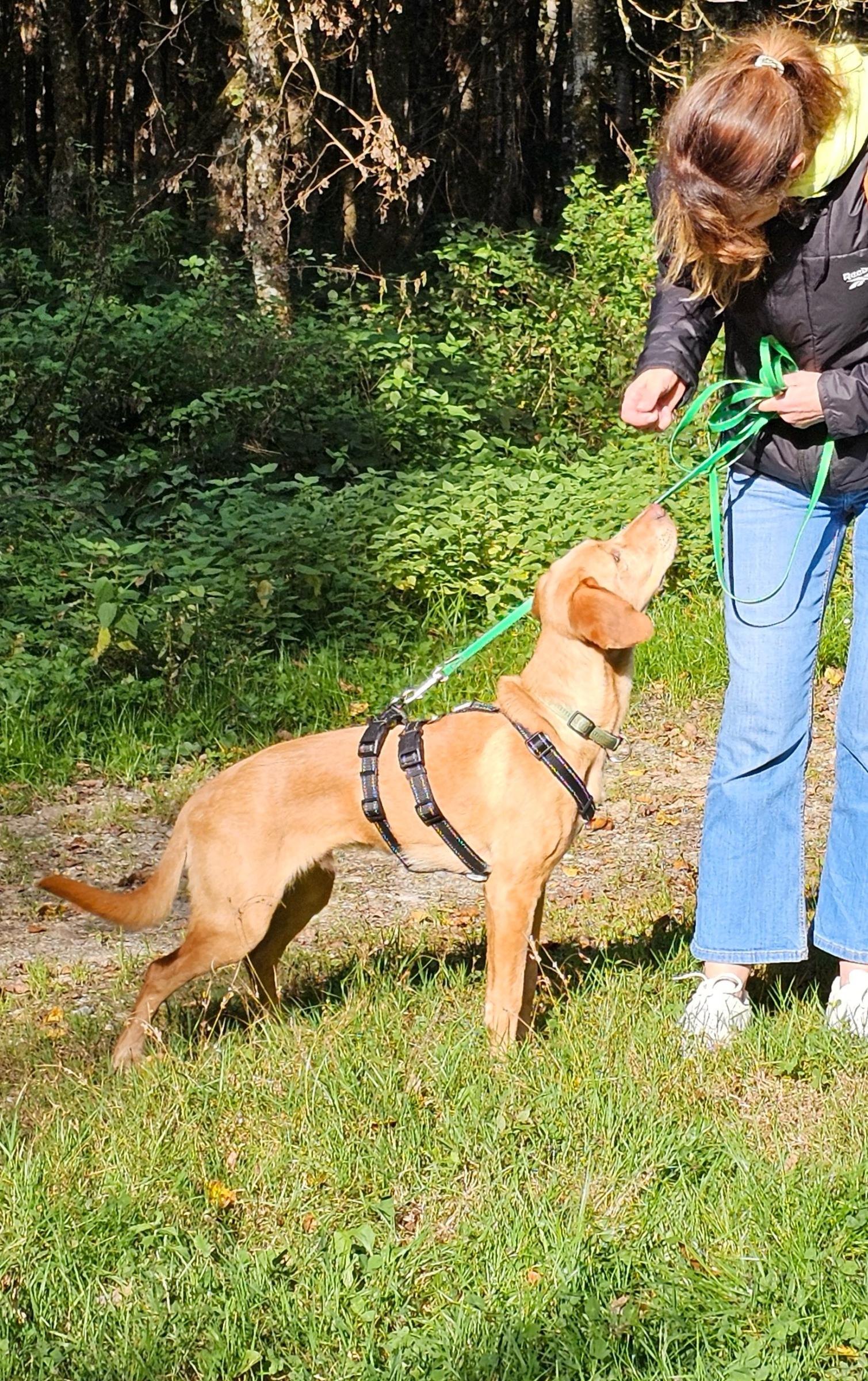 Er ist eine Frohnatur, bereits stubenrein und kennt Autofahren in seiner Hundebox. Er ist verträglich mit andern Hunden und zeigt kein Dominanzverhalten. Katzen kennt er (noch) nicht. Im Wald, auf Wiesen vor Wäldern etc. sollte er an der Leine bleiben, da er sich sehr für Wildspuren interessiert.