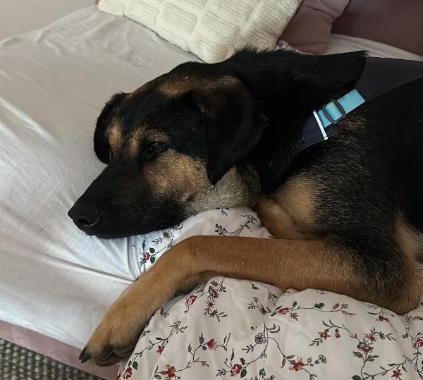 Autofahren ist für ihn momentan noch schwierig, da er zu Übelkeit neigt. Das Ein- und Aussteigen macht er inzwischen schon super und das Fahren wird weiterhin geübt. Mito ist mit anderen Hunden freundlich und fordert gerne zum Spielen auf. Katzen scheint er eher zum Jagen spannend zu finden. Bei kleinen Kindern zeigte er sich interessiert und vorsichtig, es gab aber bisher noch wenig Kontakt. Für Mito wäre eine ruhige, naturnahe Umgebung wünschenswert, da viele Reize an der Strasse für ihn anspruchsvoll sind. In der Wohnung reagiert er entspannt auf Umweltreize von draussen. Er ist ein wunderbarer Kerl, der bereits nach wenigen Wochen auftaut, gerne lernt und es unglaublich geniesst, wenn man Zeit mit ihm verbringt."