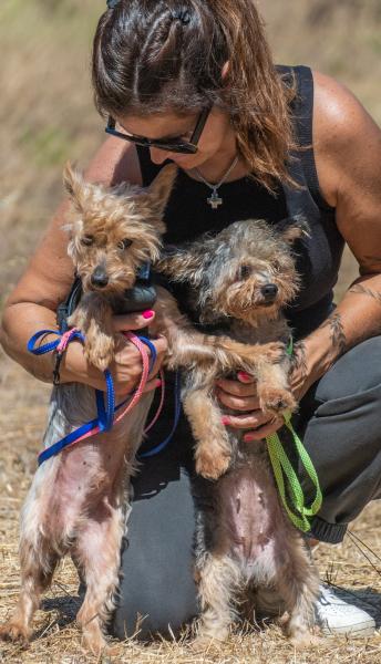 Dürfen wir vorstellen, Nini und Neco, zwei Yorkshire Terrier, geboren 2013 (Nini) und 2015 (Neco), mit einer Schulterhöhe von 25 cm. Diese beiden wurden zusammen im Tierheim abgegeben. Die Hunde sind mittlerweile in einem privaten Tierheim in Portugal, wo sie liebevoll betreut auf ein neues Zuhause warten. Die beiden sind ein Herz und eine Seele miteinander und wir können sie nicht voneinander trennen.
