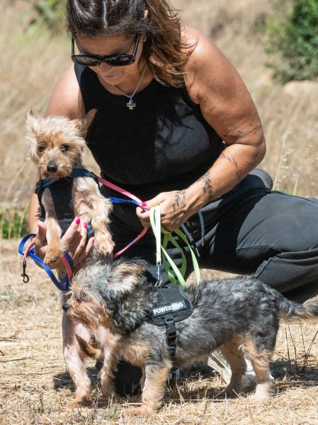Die beiden sind stubenrein, gut leinenführig und können im Auto mitfahren.