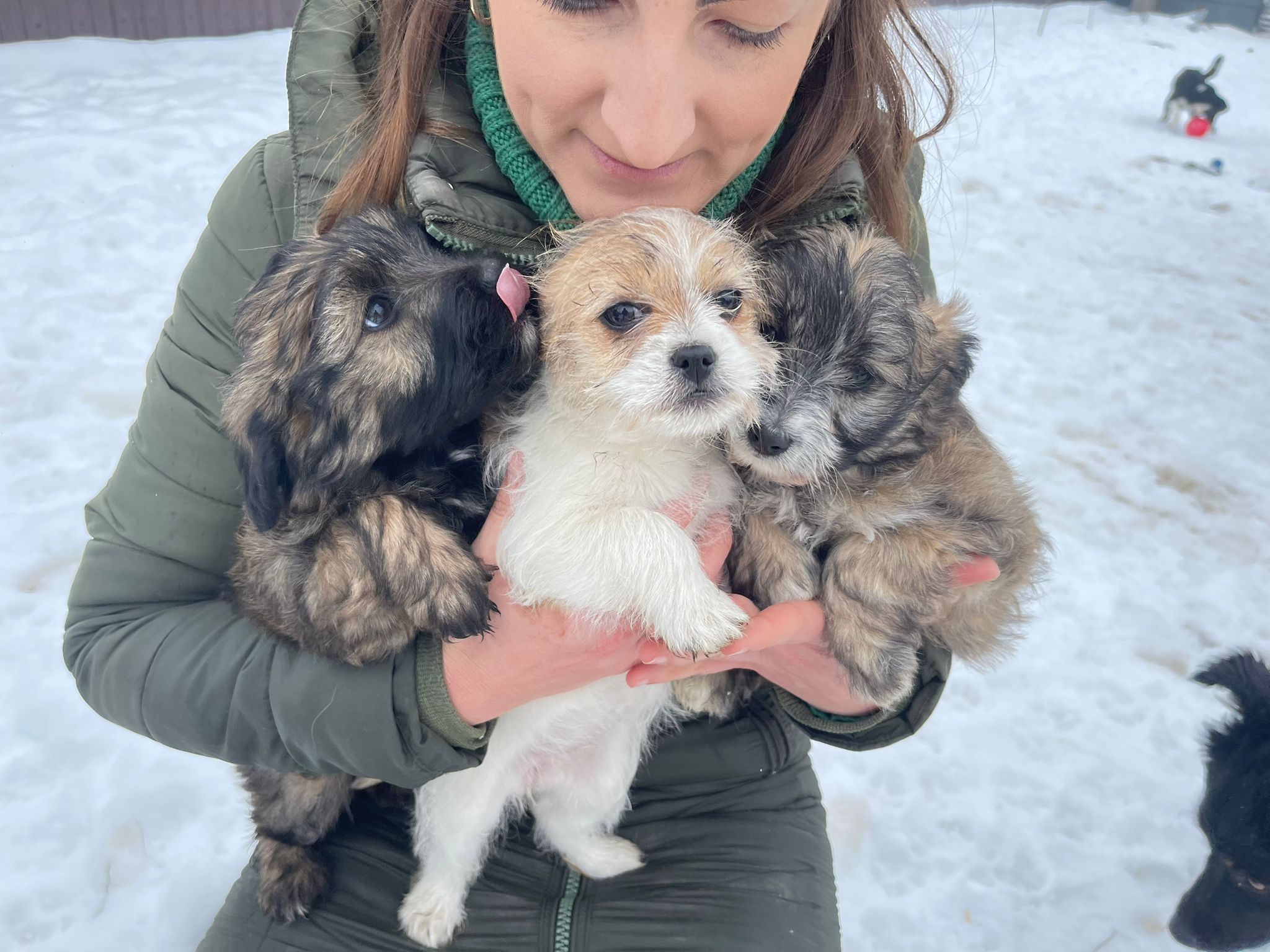Noemi und ihre Geschwister sind die kleinen Wunder von Mama Snow. Eigentlich sollte Snow in wenigen Tagen kastriert werden – doch kurz davor brachte sie völlig unerwartet drei Welpen zur Welt. Da Snow sehr zierlich ist, hatte unsere Tierschützerin Daniela nicht bemerkt, dass sie trächtig war.