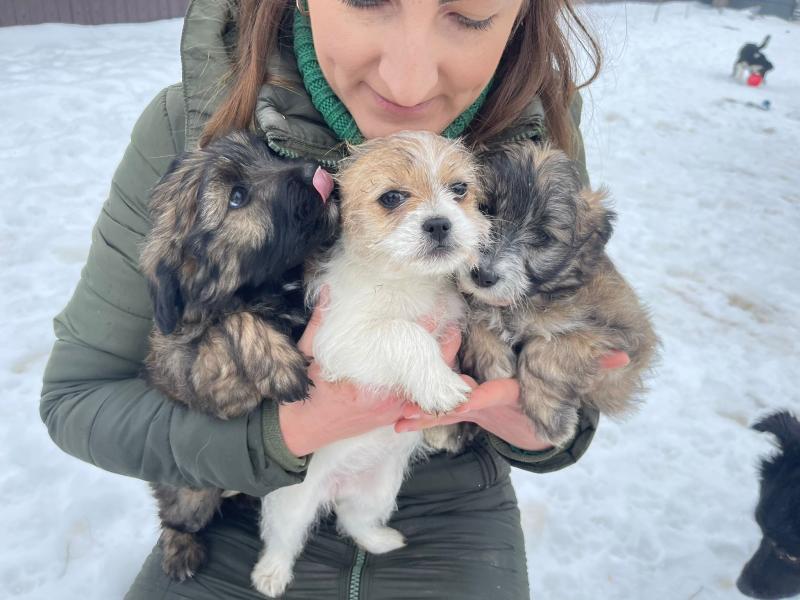 Mama Snow ist vermutlich ein Yorkshire-Terrier-Mischling und wiegt nur rund 5 kg. Über den Vater ist leider nichts bekannt, wir gehen jedoch davon aus, dass die Welpen klein bleiben werden.