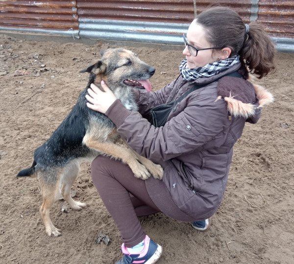 Sie ist sanft, treu, aufmerksam und möchte alles richtig machen – ein echtes Seelchen. Zurzeit lebt sie mit mehreren Hunden in einem Zwinger und lässt sich gut an der Leine führen.