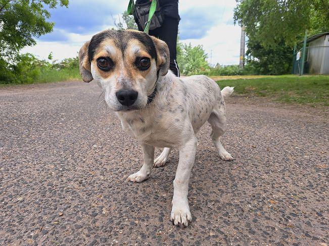 Der geschätzt im Mai 2024 geborene Normy streunte Mitte Mai 2025 in einem heruntergekommenen Viertel von Cegléd alleine auf der Straße herum und lief immer wieder Gefahr, überfahren zu werden. Zum Glück handelten tierliebe Passanten und verständigten das Tierheim, so dass der süße Hundebub in Sicherheit gebracht werden konnte.