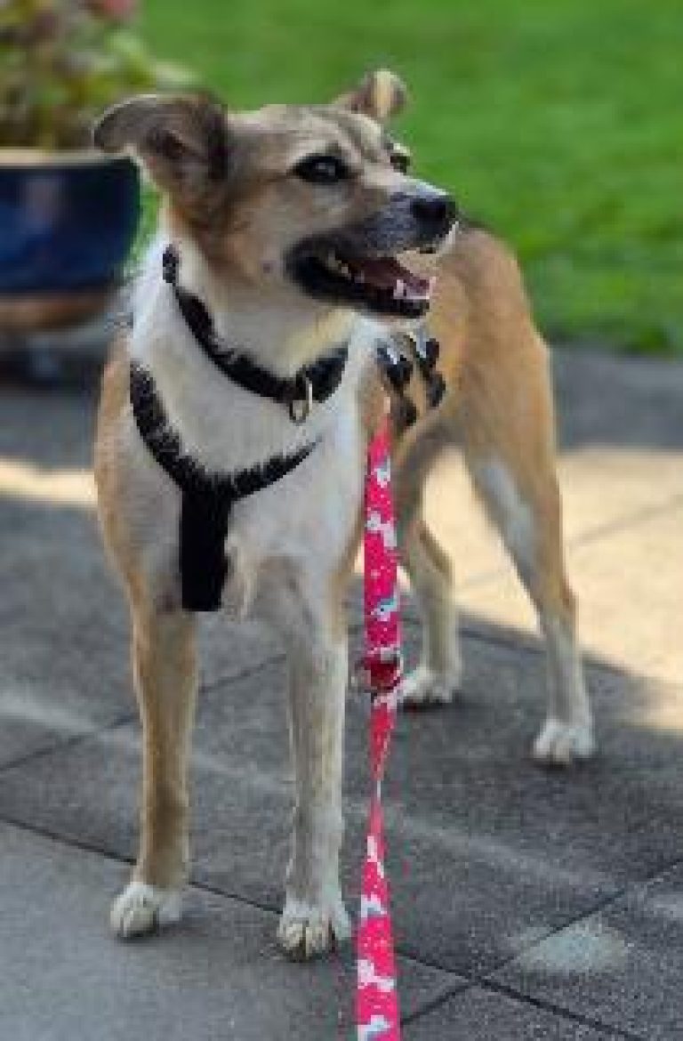 Nunia lebt seit einer Woche auf ihrer Pflegestelle in einem Rudel mit anderen Hunden. Mit den Hunden hat sie sich schnell angefreundet, auch mit den Katzen hat sie keine Probleme. Bei Menschen zeigt sich Nunia am Anfang etwas scheu, sie taut aber schnell auf, wenn sie Vertrauen gefasst hat, und dann viele Streicheleinheiten erhält. Nunia ist eine sanfte und liebevolle Hündin, sie läuft bereits gut an der Leine und ist stubenrein. Kinder sollten schon etwas älter und ruhiger sein, damit sich Nunia sicher fühlen kann. Über einen freundlichen Ersthund würde sie sich bestimmt freuen, es ist aber kein Muss.