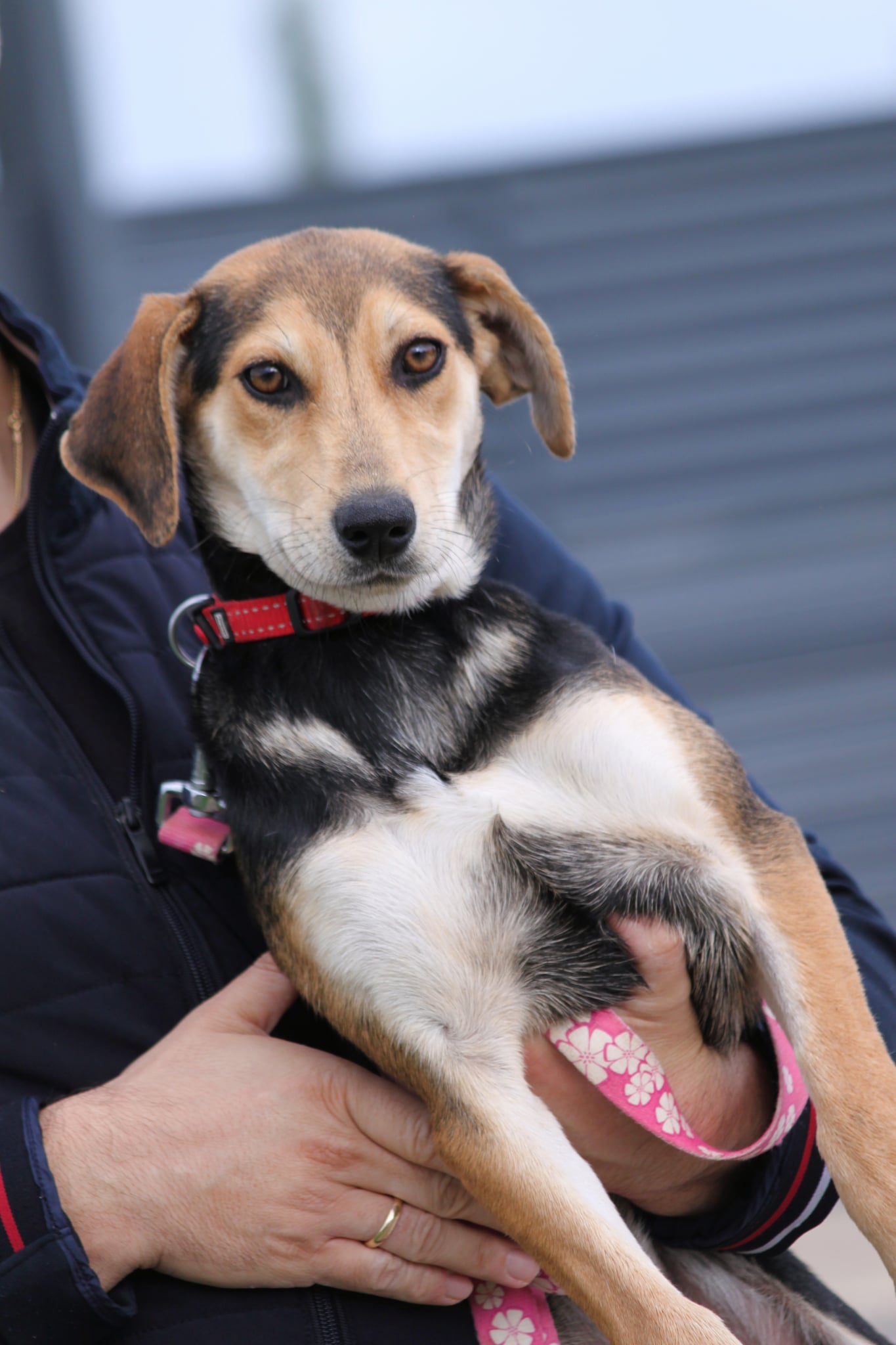 Olivia wurde weit entfernt von jeder Stadt oder Ortschaft, in der Nähe eines Sees gefunden. Sie wurde ausgesetzt und musste sich selbst durchschlagen, aber das hat ihren Lebensmut nicht gebrochen. Sie ist voller Leben und Energie und ein sehr fröhlicher Welpe.