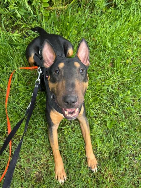 Pancho (10.07.22) ist ein junger, sehr freundlicher Bullterrier, der am liebsten überall dabei sein möchte. Mit seinem markanten Kopf, den ausdrucksvollen Augen und seinem lebhaften Wesen ist er ein echter Blickfang. Er ist ein aufgeschlossener, fröhlicher Hund, der andere Hunde mag und rassetypisch gerne anfänglich überschwänglich ist. Mit seinem charmanten Wesen ist er ein richtiger Bullibub, der das Leben mit viel Energie und Freude geniesst.