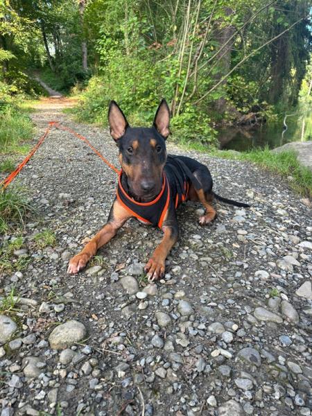 Pancho (10.07.22) ist ein junger, sehr freundlicher Bullterrier, der am liebsten überall dabei sein möchte. Mit seinem markanten Kopf, den ausdrucksvollen Augen und seinem lebhaften Wesen ist er ein echter Blickfang. Er ist ein aufgeschlossener, fröhlicher Hund, der andere Hunde mag und rassetypisch gerne anfänglich überschwänglich ist. Mit seinem charmanten Wesen ist er ein richtiger Bullibub, der das Leben mit viel Energie und Freude geniesst.