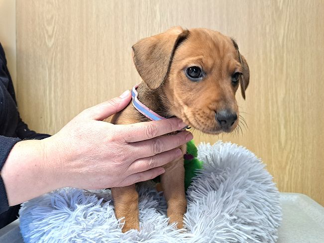 Kurzinfo: freundlich, zugewandt, welpentypisch verspielt, verschmust, verträglich, noch etwas vorsichtig & schüchtern