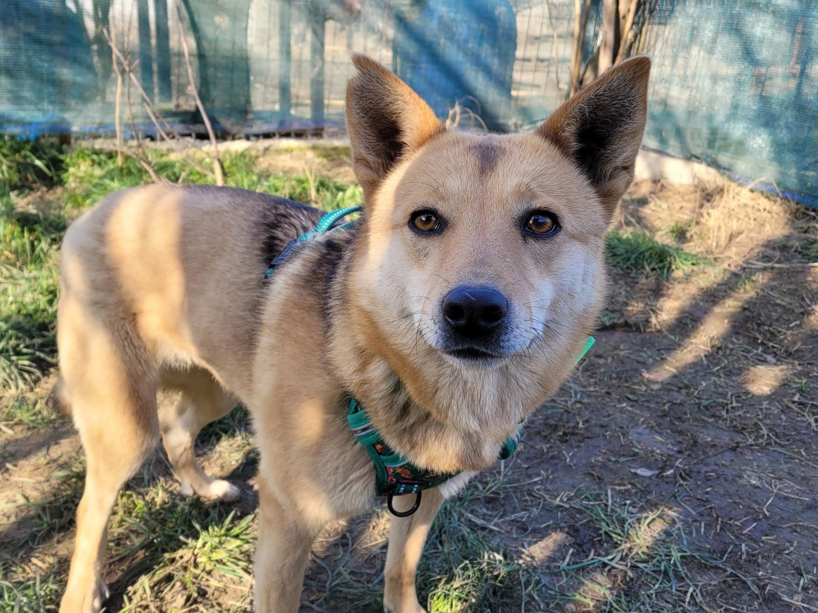 Sie ist eine total anhängliche, verschmauste Hündin, lustig, fröhlich, mit allen freundlich.