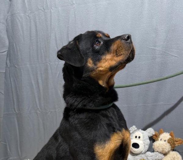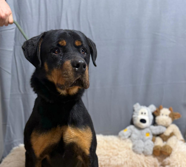 Am 8.2.2025 schreibt eine freiwillige, ungarische Helferin: "Rocky ist ein freundlicher und gut aussehender Hund. Er ist gerne in der Nähe von uns Menschen. Er läuft schön an der Leine und wacht über uns, der Umgang mit ihm ist einfach. Mit anderen Hunden verträgt er sich leider nicht, daher kann er nur ein Einzelhund sein. Rocky wartet bereits seit 3 Jahren darauf, den Richtigen, der die Charaktereigenschaften eines Rottis - arbeitswillig, gehorsam, selbstbewusst, tapfer, freundlich, anhänglich und gutmütig - zu schätzen weiss und seinem Bewegungsdrang gerecht wird, zu finden."