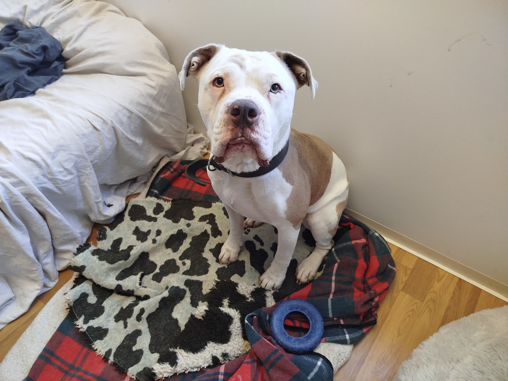 Ruffy lebte nach einer Beschlagnahmung über ein Jahr in einem Tierheim. Anfangs Juli 2025 kam er dann zu uns, da er dort eingeschläfert werden sollte. Da Ruffy dort nicht viel Kontakt mit Hunden hatte lernt er nun bei uns wie man mit Artgenossen kommuniziert. Unterwegs ist er ein ruhiger Begleiter. Begegnungen aller Art sind unkompliziert. Weil er momentan noch jagdliche Motivation im Umgang mit Hunde zeigt, sollte sein neues zu Hause weder Hunde, noch Katzen oder Kinder haben. Mit Menschen im Allgemeinen ist Ruffy freundlich und verschmust. Im Haushalt sollte darauf geachtet werden, dass er die Haustüre nicht bewacht. Das ist aber mit einfachen Methoden zu verhindern. In vielen Punkten ist Ruffy ein super Hund. Wir hoffen für ihn ein verantwortungsvolles zu Hause zu finden, wo man an den wenigen Baustellen mit ihm arbeiten will.