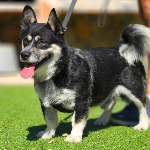 Rufo ist ein eher ruhiger, ausgeglichener Rüde mit einem ganz besonderen Erscheinungsbild: Er hat den Kopf eines Huskys und den Körper eines Dackels – ein ‘Huskel’ sozusagen, eine einzigartige Kombination, die ihn sofort unverwechselbar macht 😉 Im Tierheim zeigt sich Rufo freundlich und sozial. Mit Hündinnen versteht er sich hervorragend und spielt gern in ihrer Gesellschaft. Mit anderen Rüden kommt er gut zurecht, solange sie nicht dominant sind. An der Leine läuft er gut.