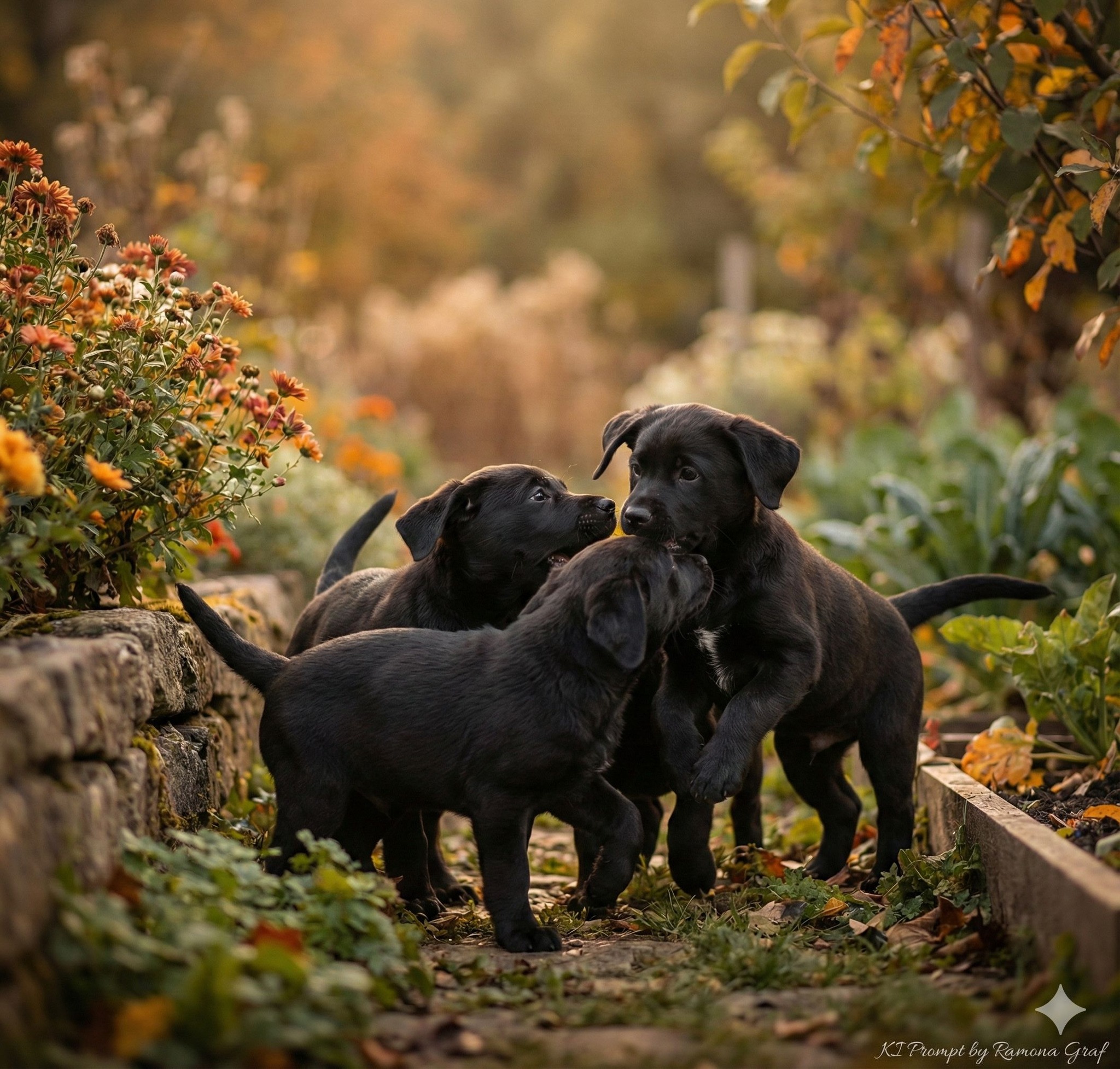 Alle fünf sind unglaublich menschenbezogen, offen und voller Lebensfreude. Sie spielen, lernen, entdecken die Welt – und ja, sie wirbeln gerade ordentlich unser Leben durcheinander. Aber genau so soll es sein, denn sie sind noch Babys. Mit knapp 13 Wochen zeigen sie bereits, wie schlau sie sind: „Sitz“ klappt schon erstaunlich gut, und ihre Lernfreude berührt uns jeden Tag aufs Neue.
