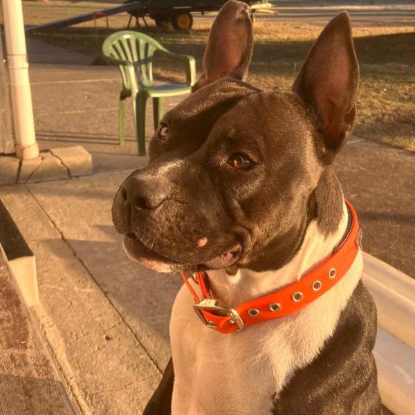Stella sieht aus wie ein Bodybuilder, sie ist sehr kräftig, muskulös, kompakt und hinten etwas überbaut. Sie ist eine sehr freundliche, liebe, sensible, aufgeschlossene und anhängliche Hündin. Sie holt sich gerne Streicheleinheiten ab, und mag es, wenn man sich um sie kümmert und ihr Aufmerksamkeit und Zuneigung schenkt, da hat sie viel Nachholbedarf und