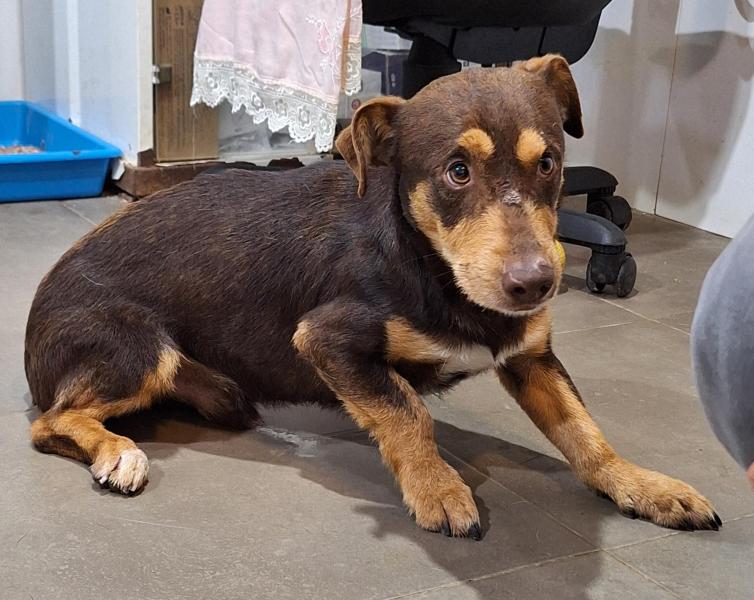 Männlich - Podenco-Mischling (12.04.2023), 11,2 kg. 33 cm. STITCK wurde in Torredelcampo ausgesetzt. Er irrte einen Monat lang durch die Straßen der Stadt, ließ sich aber nicht hochheben. Glücklicherweise ließ er sich eines Tages von einem Mädchen hochheben und sie brachten ihn ins Tierheim. Jetzt lebt er bei uns im Tierheim seit gut einem jahr und gewöhnt sich langsam an das Leben im Tierheim und an die Gesellschaft von Menschen. Er lässt sich problemlos hochheben und lernt langsam, an der Leine zu gehen. Er lebt mit anderen Hunden, sowohl Rüden als auch Hündinnen, zusammen und zeigt in ihrer Gegenwart keine Verhaltensprobleme. Er genießt seine Ausflüge im Hof ​​und auch, wenn die Freiwilligen mit ihm Gassi gehen.