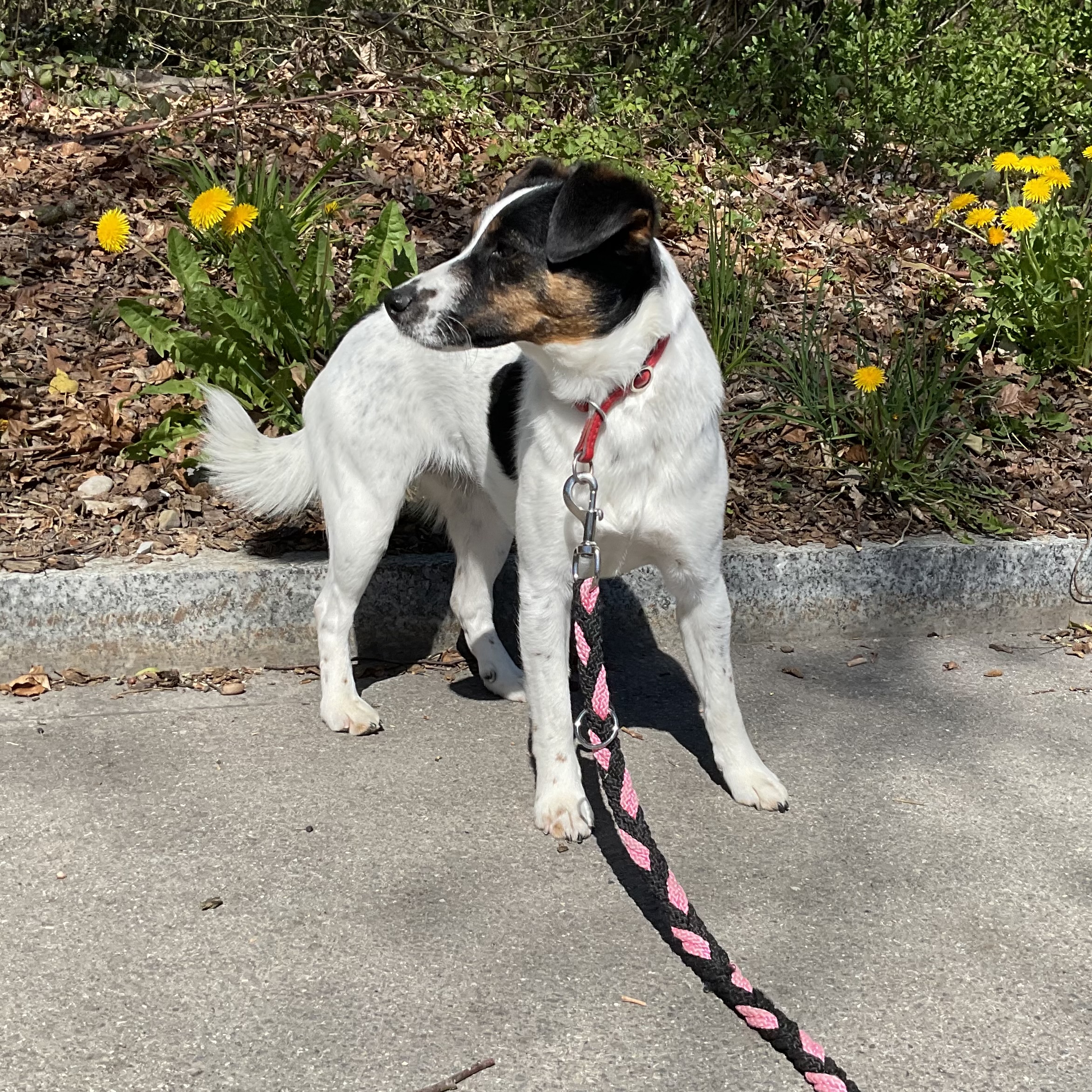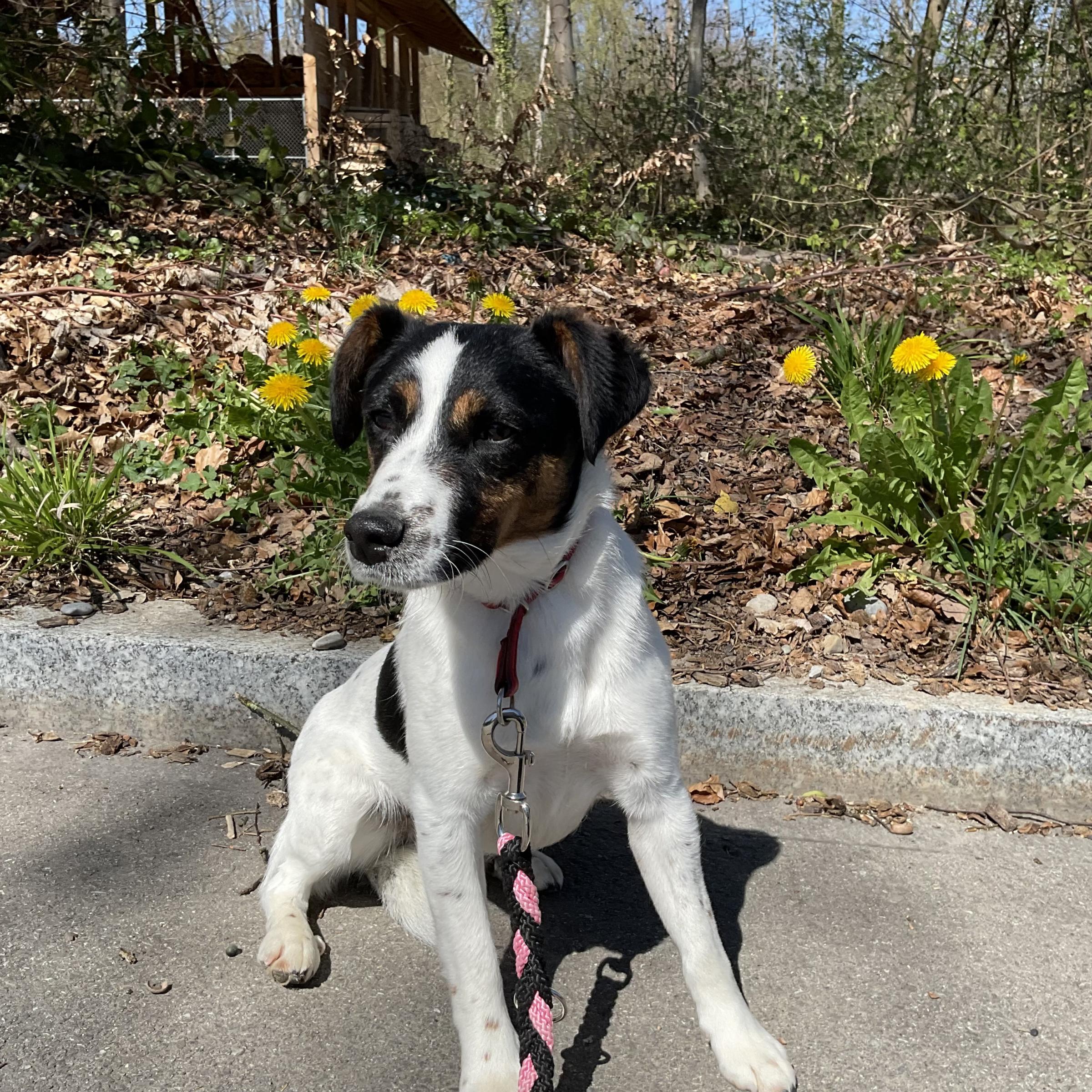 Szilva läuft sehr gut an der Leine und geniesst es draussen die Welt zu entdecken, unbekanntes kann sie noch etwas verunsichern.