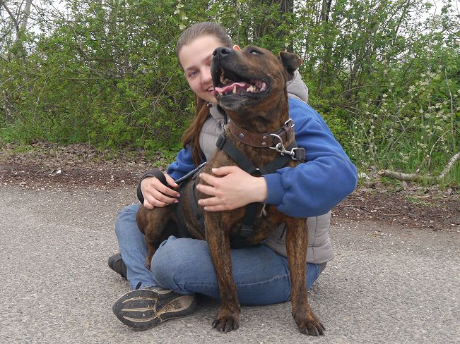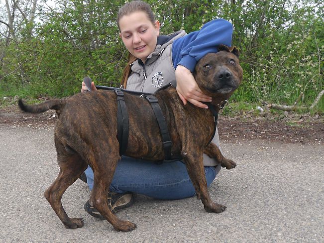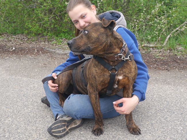 Vegas ist ein aktiver, neugieriger und bewegungsfreudiger Entdecker. Leider hat er viel zu selten die Gelegenheit, seine Abenteuerlust zu stillen, denn für regelmäßige Spaziergänge bleibt im Heim einfach zu wenig Zeit. Wird er dann mal aus dem Zwinger geholt, ist er zunächst einmal sehr aufgeregt und hippelig und zieht einen etwas durch die Gegend. Das legt sich aber nach einer Weile und dann läuft er sogar recht ordentlich an der Leine. Und er findet dann sogar auch noch die Muße für ein paar Kuscheleinheiten, denn auch das mag er sehr. Im Video vom Apr-25 sieht man ihn zunächst mit einem der bekannten Pfleger und später mit einem ihm unbekannten Mädchen. Bei dem dort auch stattfindenden Photoshooting hat uns der gutgelaunte Vegas mit seinen lustigen Ohren eine Vielzahl an ulkigen Gesichtausdrücken angeboten :-).