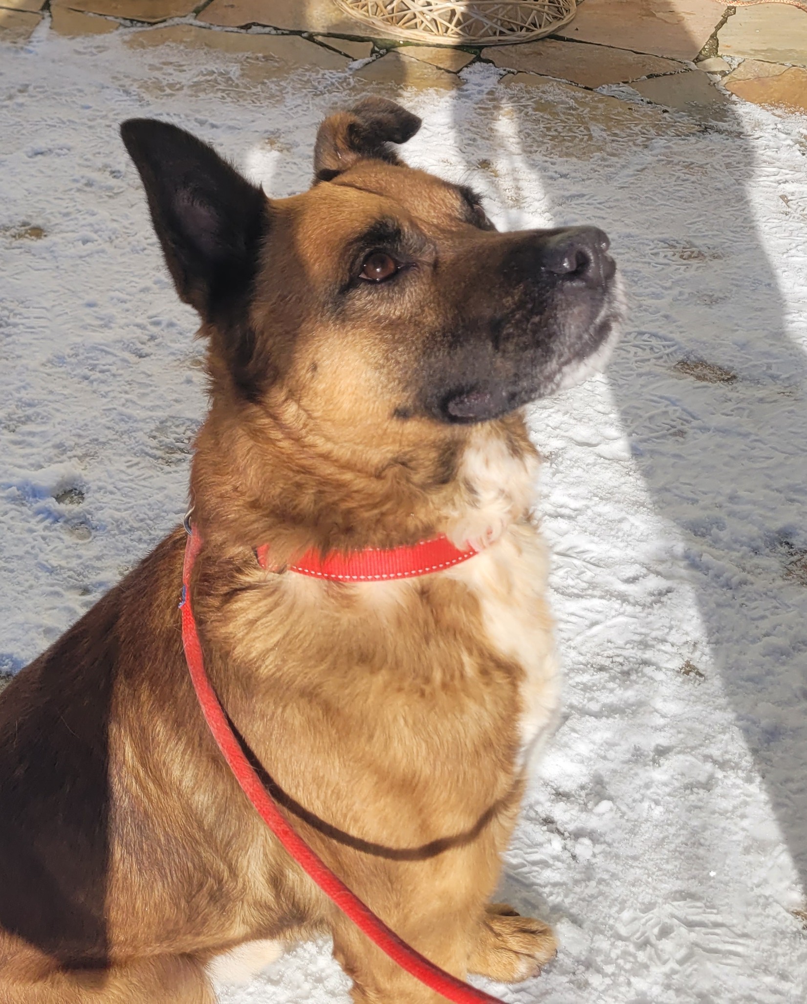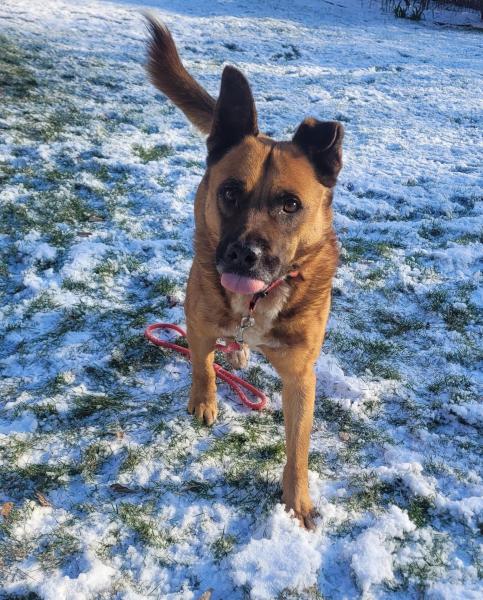 Winnie ist ein ganz toller Hund, allerdings nicht für Jedermann geeignet. Seine Optik erinnert stark an einen Deutschen Schäferhund, allerdings etwas kleiner, mit wunderschönem rotbraunem Fell und einem herzigen Stupsnäschen, was etwas an einen Rottweiler erinnert. Er wirkt von der Statur etwas bulliger als ein typischer Dt. Schäferhund und auch sein Gesichtsausdruck könnte in Richtung Bulldog/Rottweiler/Boxer gehen. Manche Menschen reagieren auf ihn mit etwas viel Respekt, weshalb wir gerne erfahrene Hundemenschen suchen, die darauf achten, dass er keine schlechten Erfahrungen macht und auch weiterhin so ein lieber und umgänglicher Zeitgenosse bleibt.