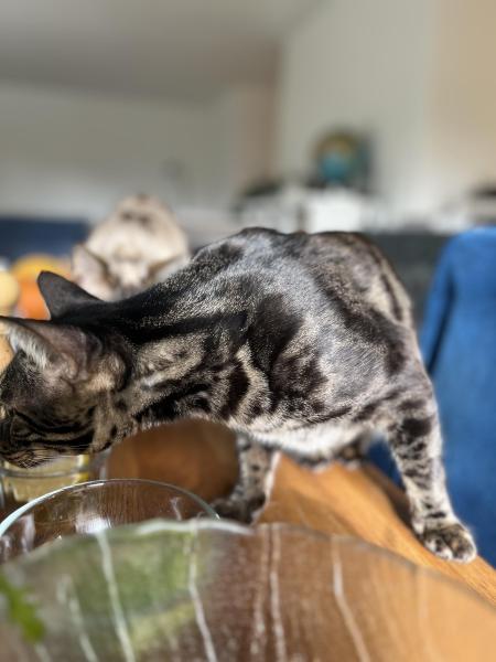 Bengalen sind sehr bewegungsorientierte, elegante Katzen, die auch kastriert kaum zunehmen, sie spielen bis ins hohe Alter. Sie brauchen Auslauf oder eine für Katzen gut eingerichtete Wohnung.