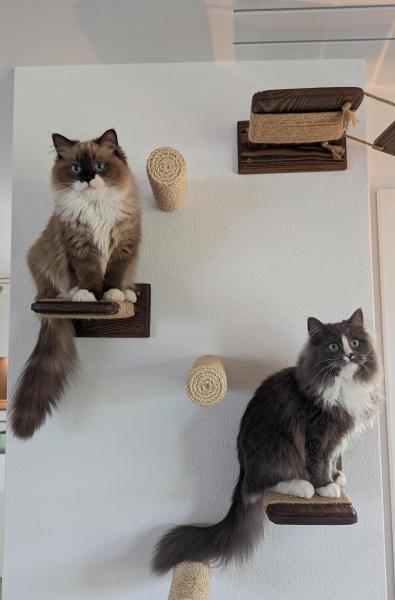 Bilal und Chloé sind reinrassige Ragdoll-Katzen und reine Wohnungskatzen, was auch ihrer Rasse entspricht. Sie fühlen sich in der Wohnung sehr wohl und sollen auch weiterhin als Hauskatzen gehalten werden.