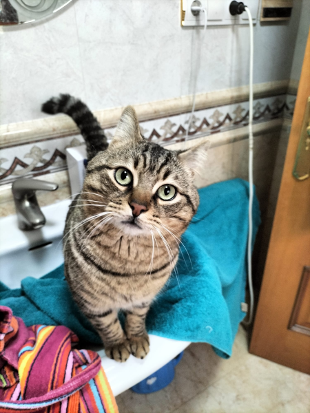 Die Pflegestelle ist einer kleinen, lokalen Tierschutzgruppe angegliedert, die wir persönlich kennen und als Verein jährlich besuchen. Die Tierschützer baten uns um Hilfe, denn trotz längerer Suche konnte bis jetzt kein Zuhause für den liebenswerten jungen Kater in Spanien gefunden werden.