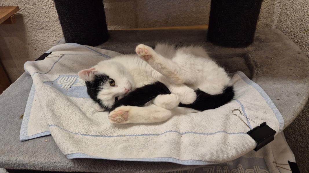 Sie ist am 23. Dezember 2025 bei der Tierlihilfe eingezogen. Sie wurde als Findelkatze in einer Tierarztpraxis im Berner Oberland abgegeben.