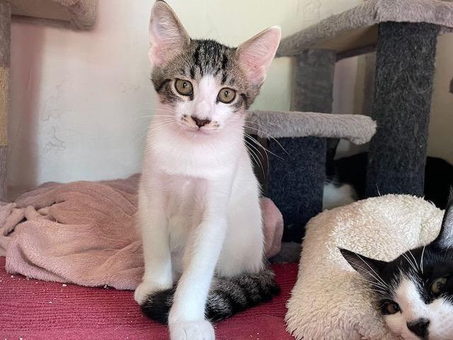 Das hübsche Katzenkind Dama wurde mit der Mama und den beiden Geschwisterchen in einer Katzenkolonie gefunden und mit der Falle eingefangen. Nach dem Tierarztbesuch durfte die ganze Familie in die Auffangstation ziehen.