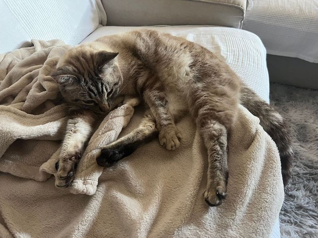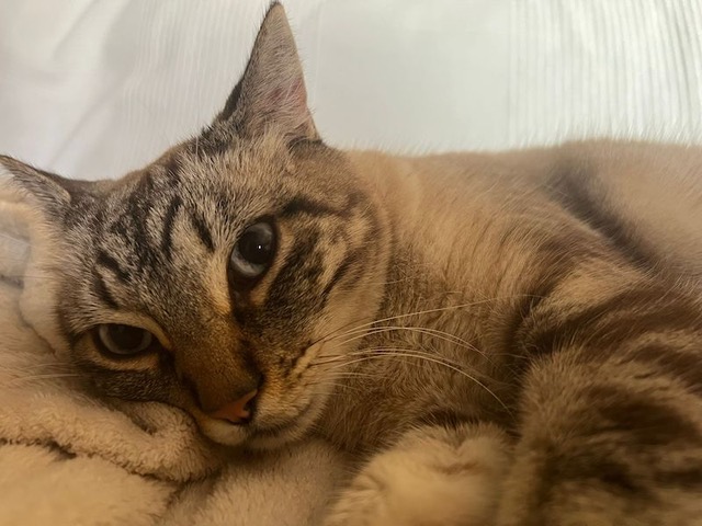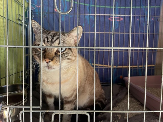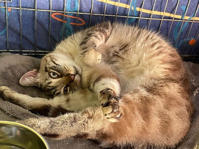 Der hübsche Siam Tabby Point Kater Dylan hatte mal ein richtiges Zuhause. Die frühere Besitzerin verliebte sich neu und zog mit ihrem Freund in ein anderes Land. Für ihren Hund und die Katze hatte sie keine Verwendung mehr. Der kleine Hund wurde weitergereicht und die Katze kurzerhand vor die Tür gestellt und dem Schicksal überlassen. So streifte er verlassen um die Häuser, wurde ab und zu gefüttert, bis ihn nun Tierschützer in die Auffangstation brachten.